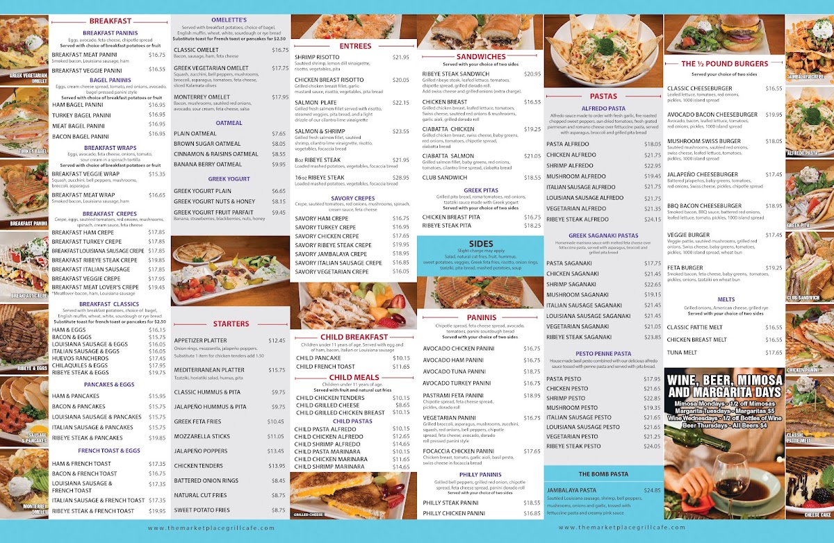 At The Market Place Grill Cafe, every meal is an experience. Their menu showcases an array of Mediterranean-inspired dishes, but the highlight is undoubtedly their Greek Pitas and Greek Style Wraps. Indulge in the Ribeye Steak Pita, expertly grilled to your liking for US$21.95, or savor the savory Greek Chicken Breast Wrap for mere US$20.15. Each dish is generous in portion and crafted with fresh ingredients—perfectly embodying the essence of Mediterranean cuisine.